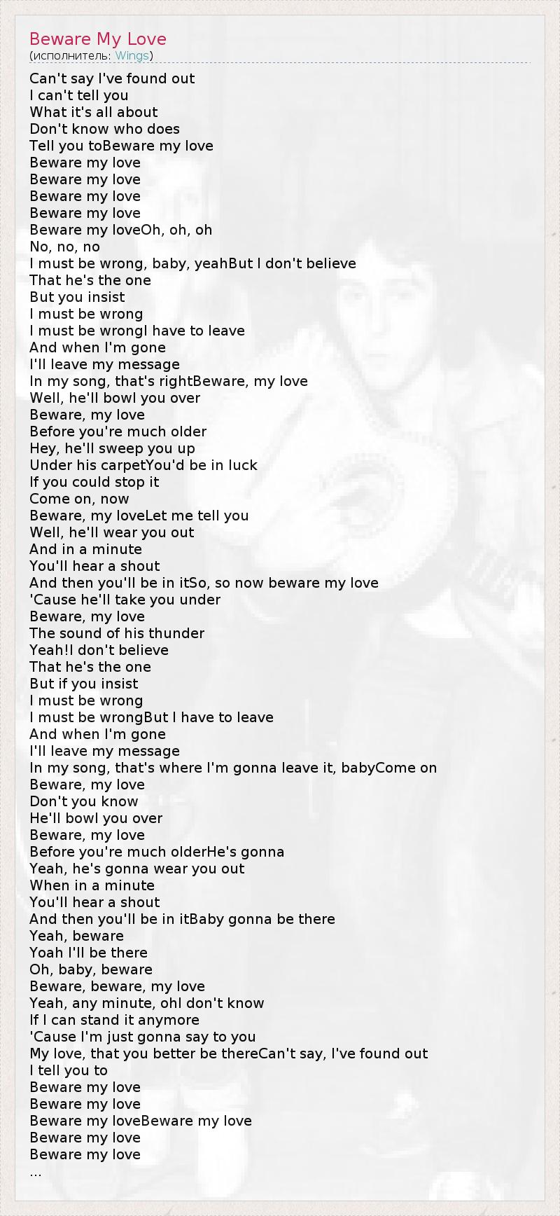 Beware, my loveLet me tell you