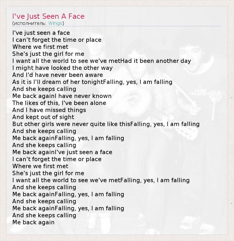 А как ты думаешь, о чем песня "I've Just Seen A Face" ?