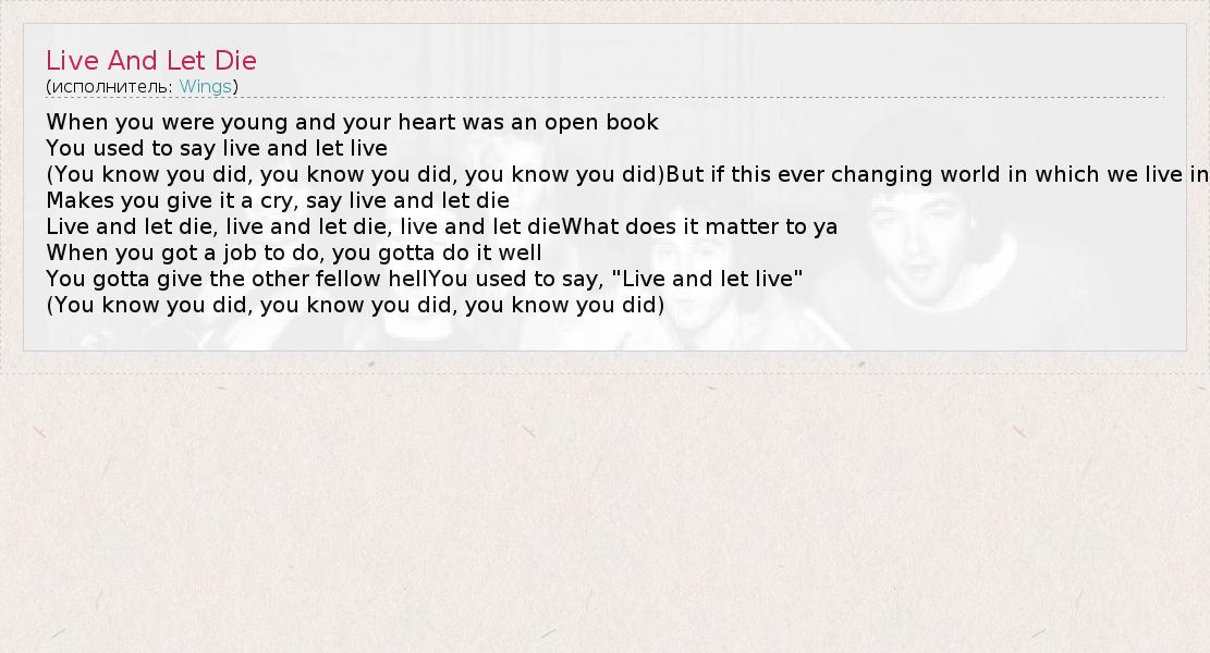 А как ты думаешь, о чем песня "Live And Let Die" ?