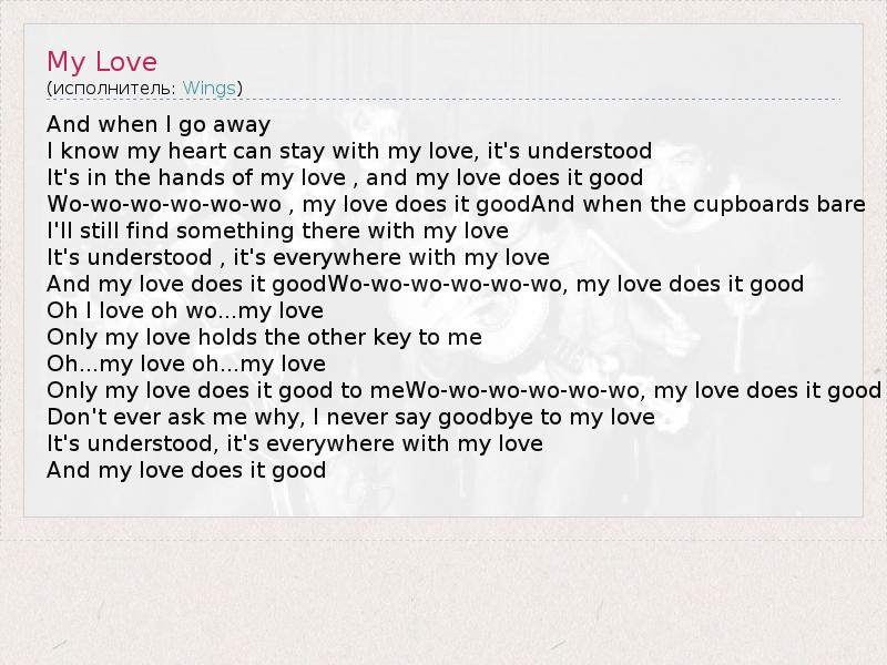 Only my love does it good to meWo-wo-wo-wo-wo-wo, my love does it good