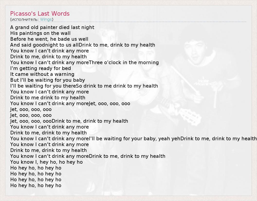 А как ты думаешь, о чем песня "Picasso's Last Words" ?