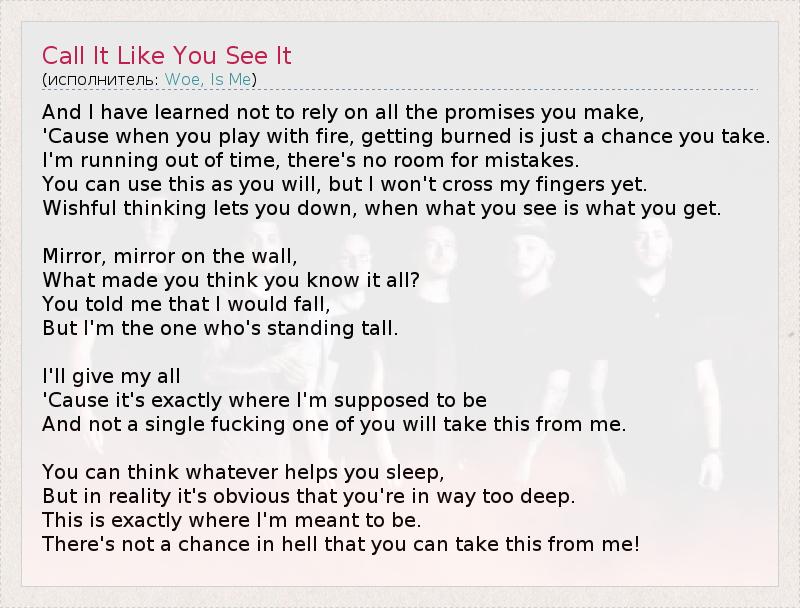 А как ты думаешь, о чем песня "Call It Like You See It" ?