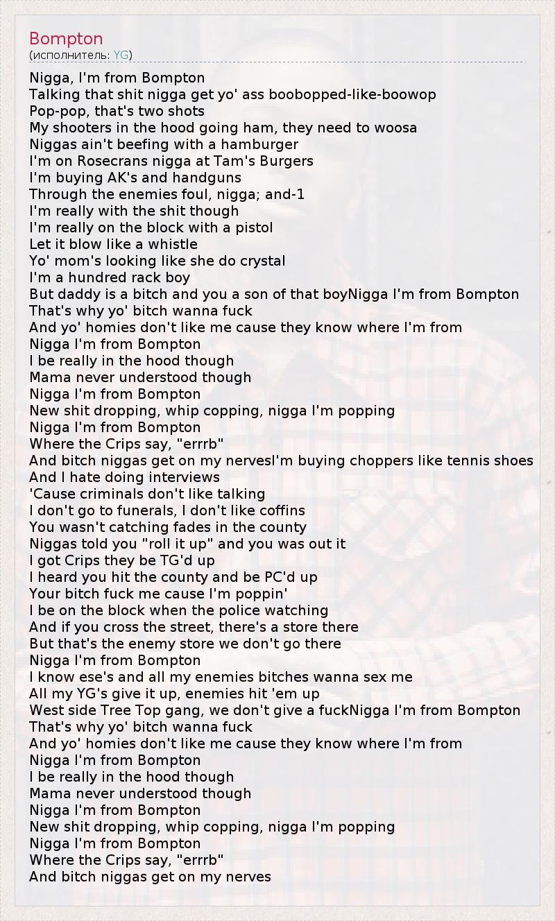 But daddy is a bitch and you a son of that boyNigga I'm from Bompton