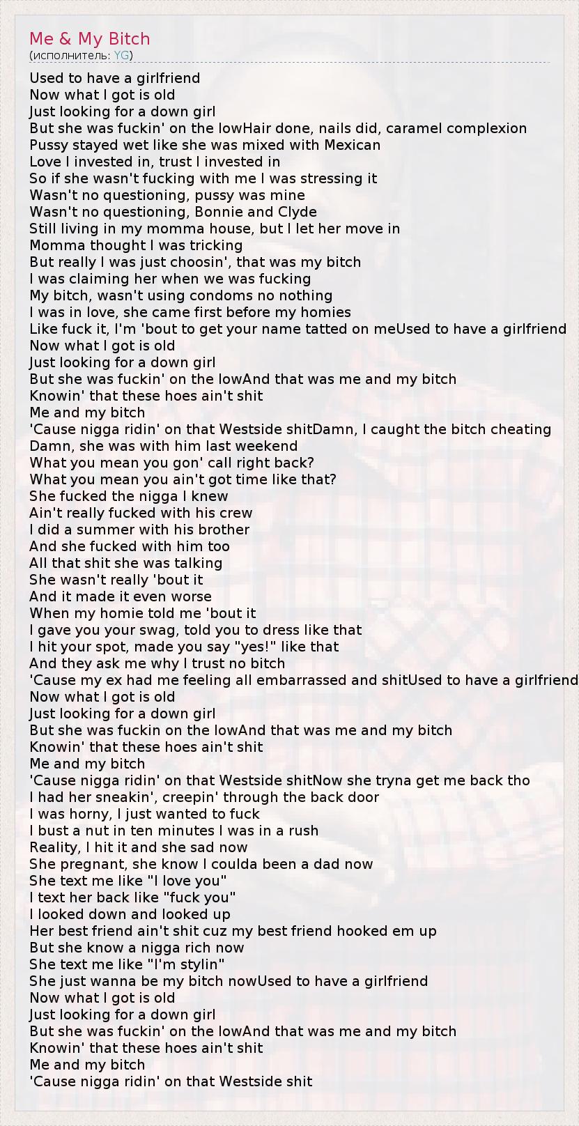 А как ты думаешь, о чем песня "Me & My Bitch" ?