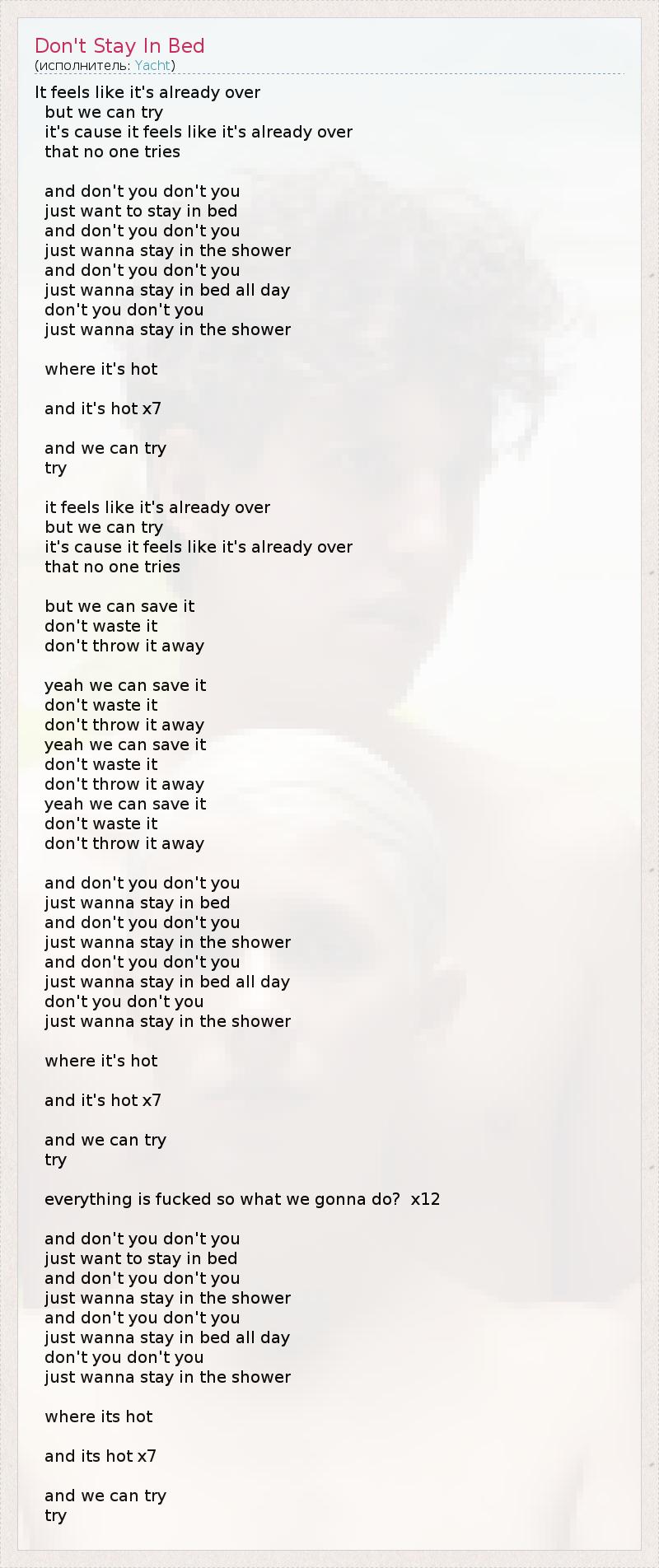 А как ты думаешь, о чем песня "Don't Stay In Bed" ?