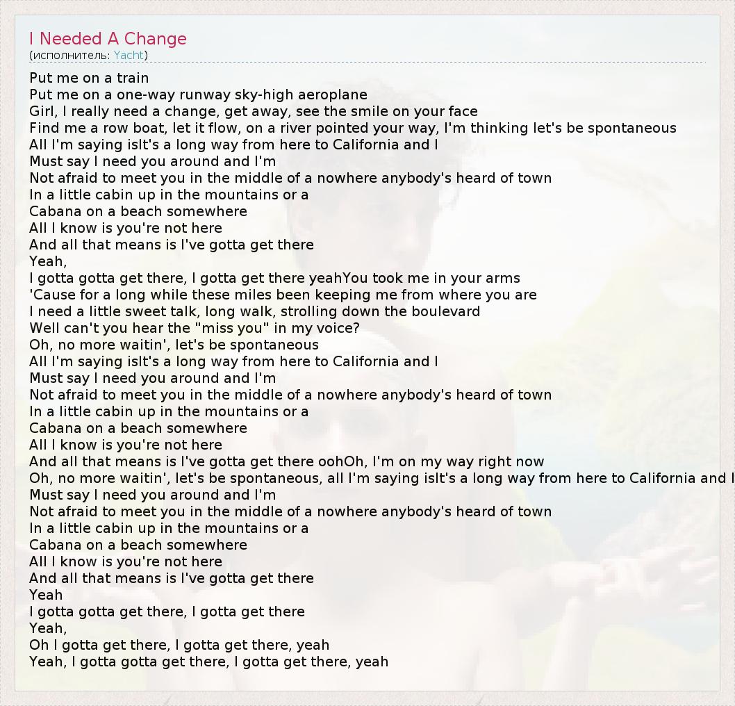 А как ты думаешь, о чем песня "I Needed A Change" ?
