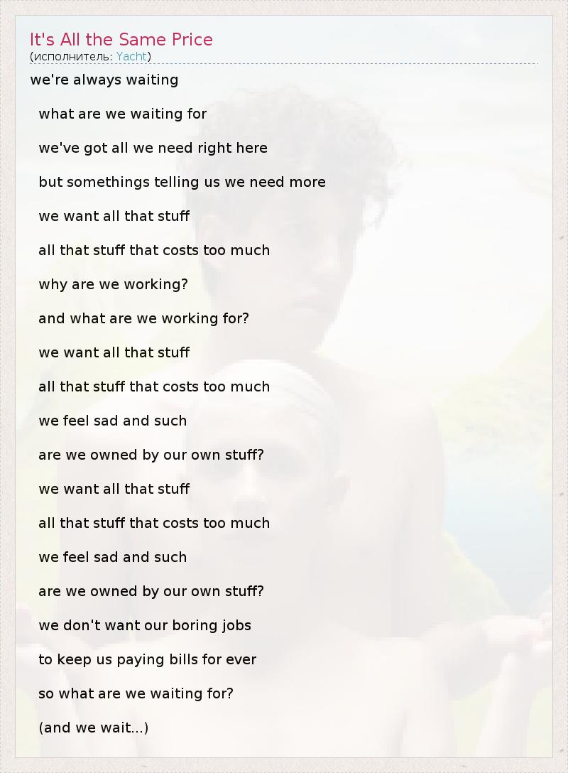 А как ты думаешь, о чем песня "It's All the Same Price" ?