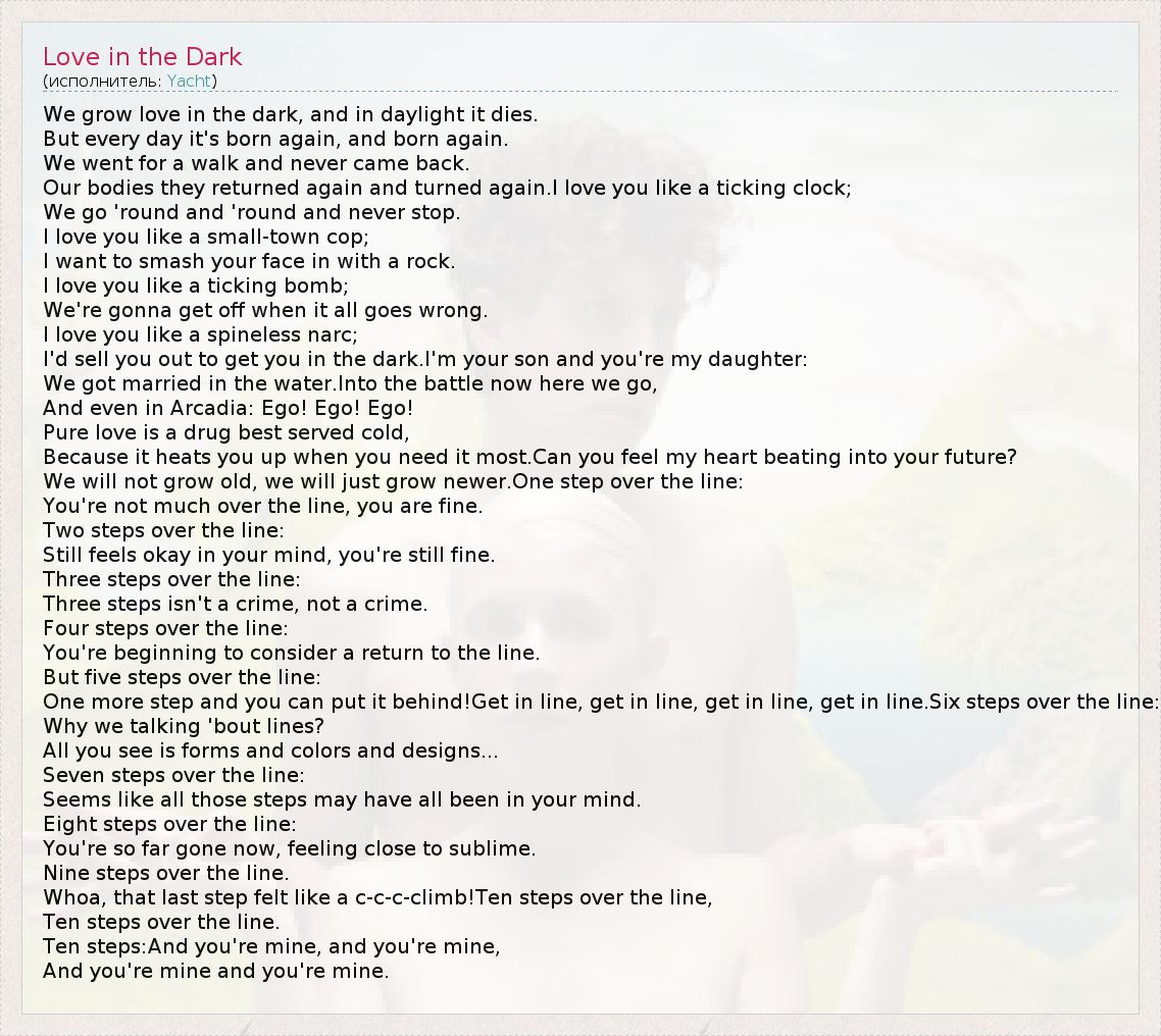А как ты думаешь, о чем песня "Love in the Dark" ?