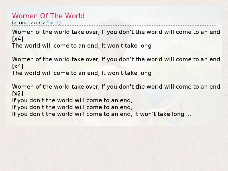 А как ты думаешь, о чем песня "Women Of The World" ?
