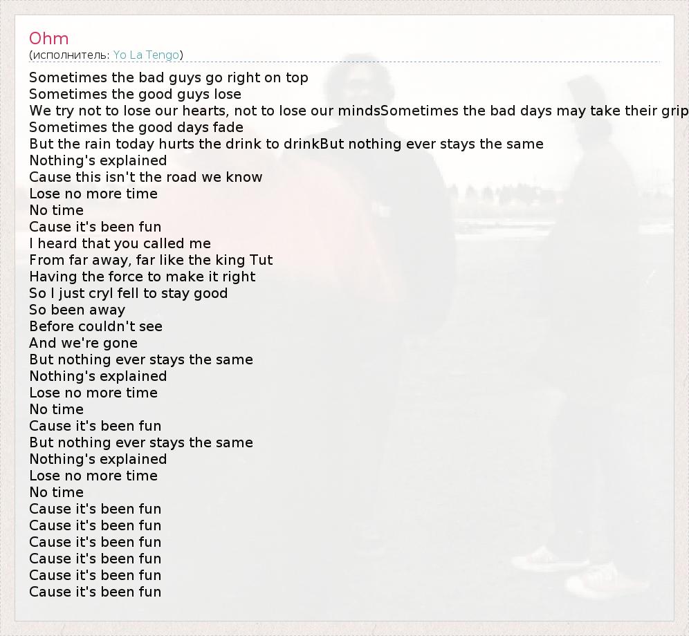 But the rain today hurts the drink to drinkBut nothing ever stays the same