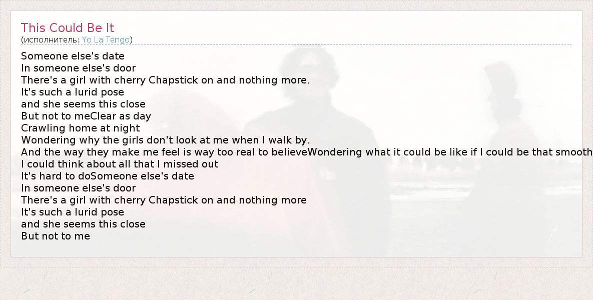 А как ты думаешь, о чем песня "This Could Be It" ?