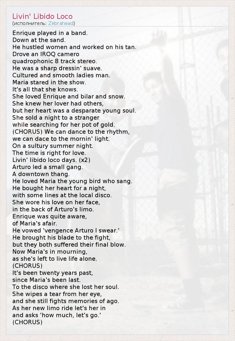 А как ты думаешь, о чем песня "Livin' Libido Loco" ?