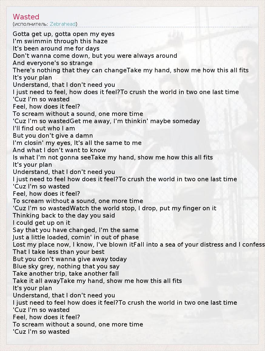 'Cuz I'm so wastedWatch the world stop, I drop, put my finger on it
