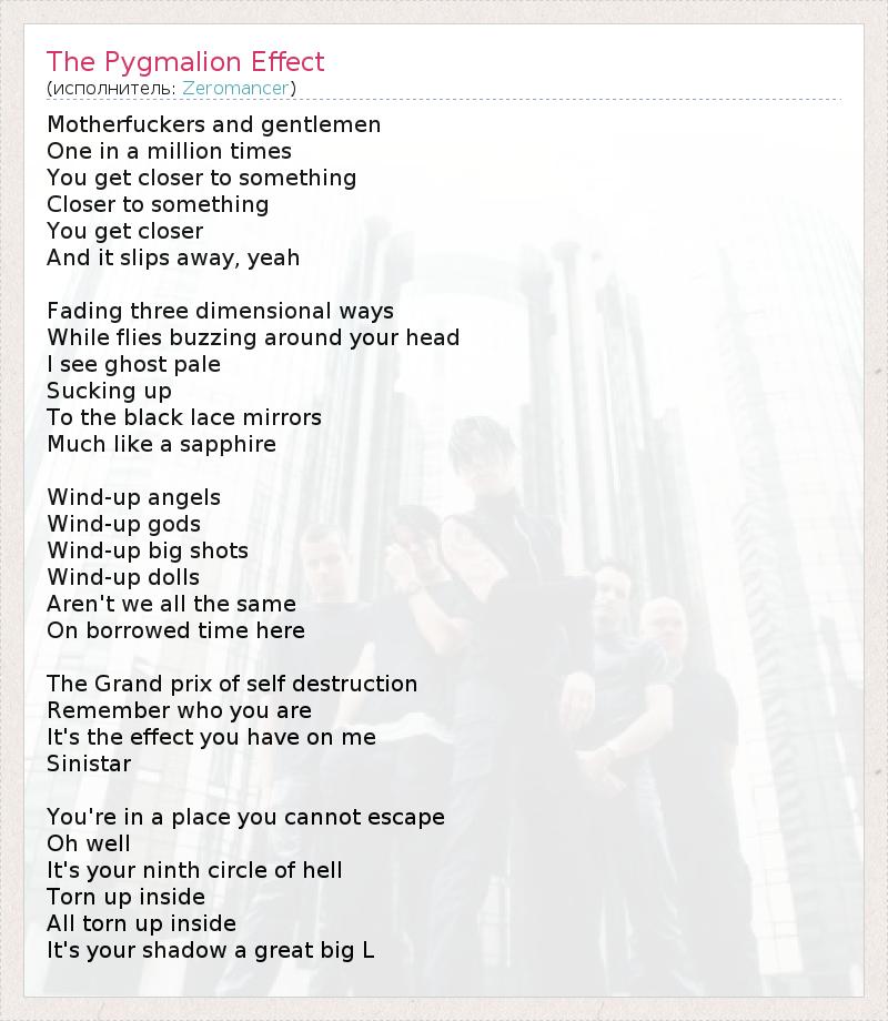 А как ты думаешь, о чем песня "The Pygmalion Effect" ?