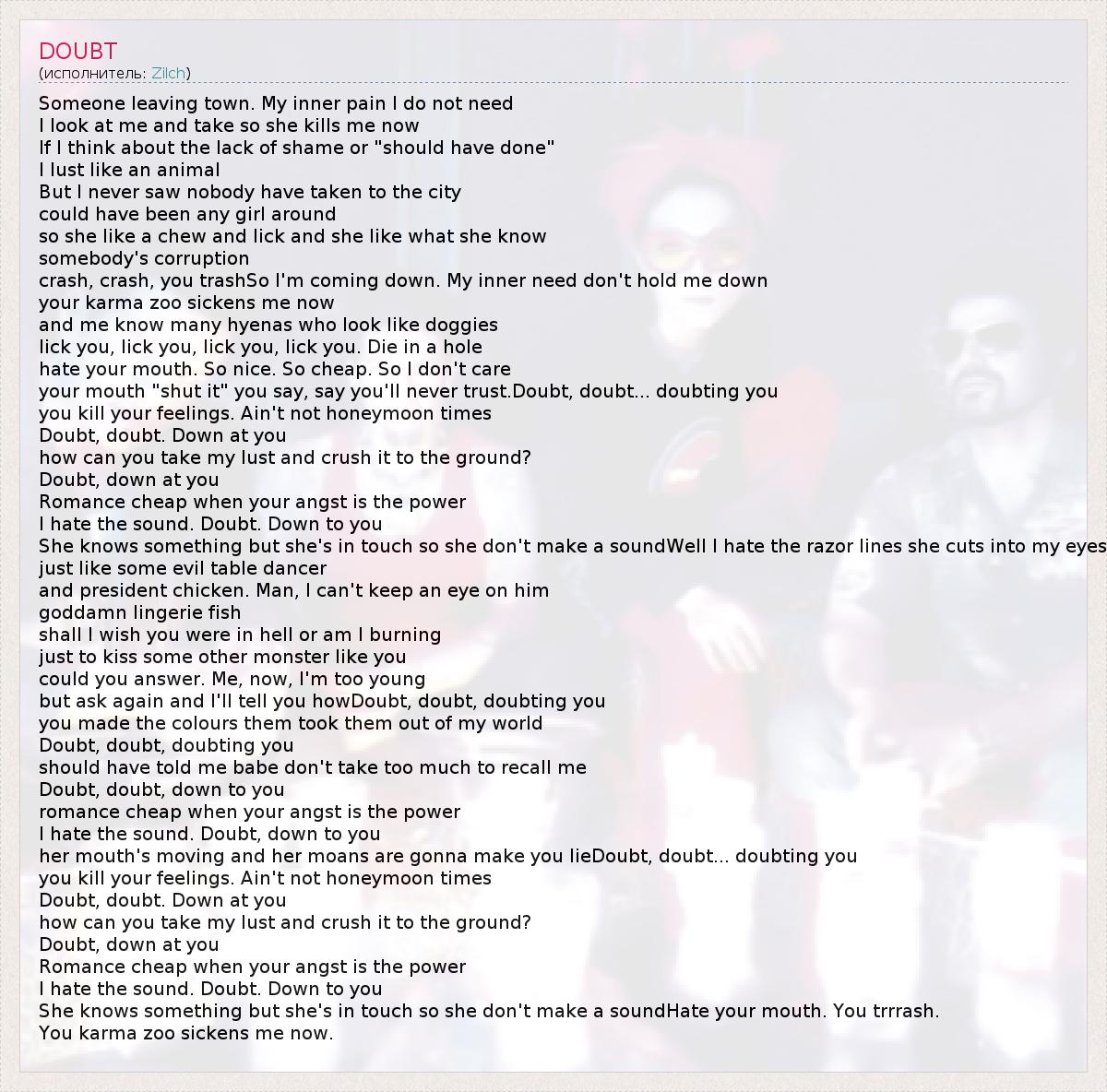 your mouth "shut it" you say, say you'll never trust.Doubt, doubt... doubting you
