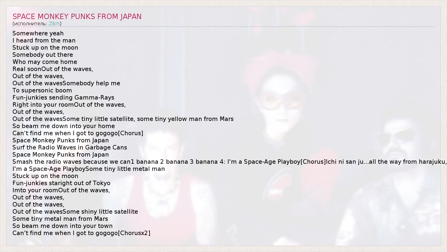 ГлавнаяИсполнителиZilchSPACE MONKEY PUNKS FROM JAPAN