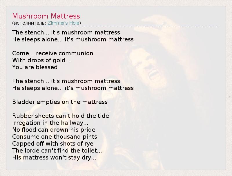 А как ты думаешь, о чем песня "Mushroom Mattress" ?