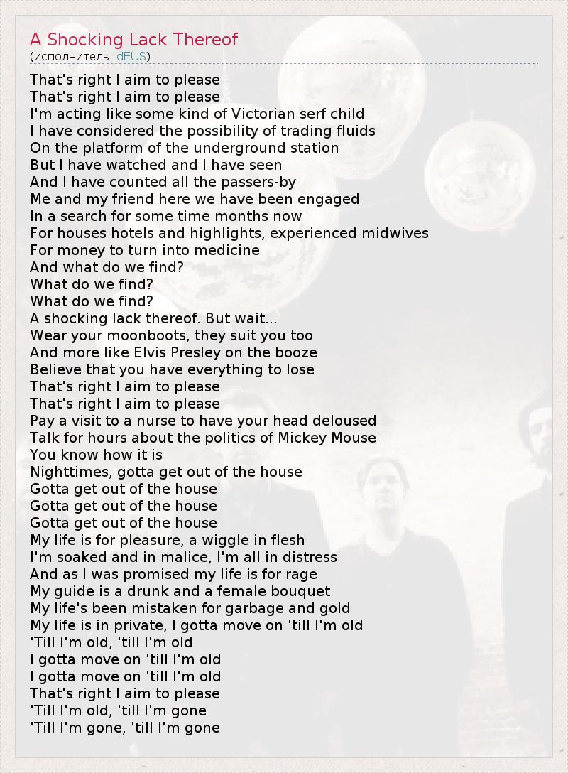 А как ты думаешь, о чем песня "A Shocking Lack Thereof" ?