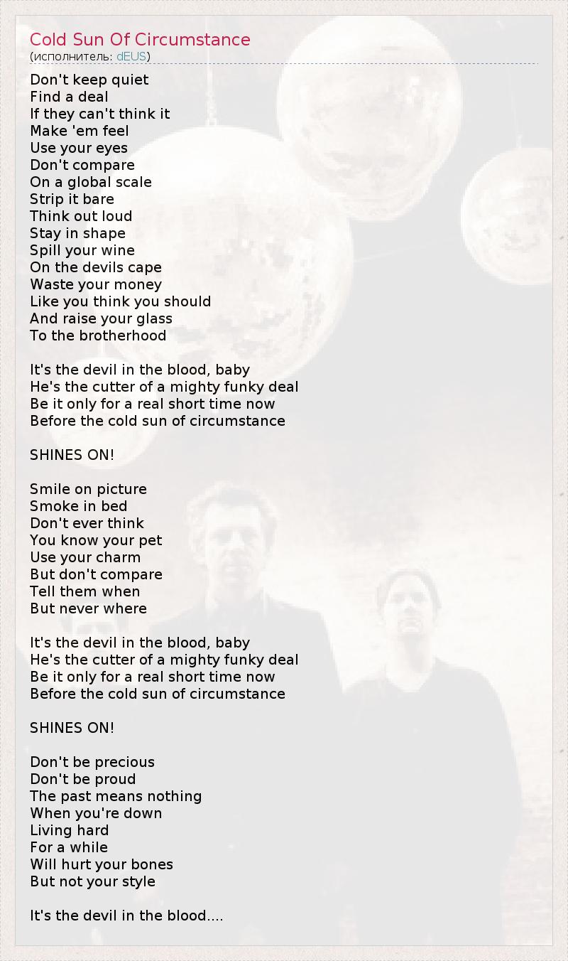 А как ты думаешь, о чем песня "Cold Sun Of Circumstance" ?