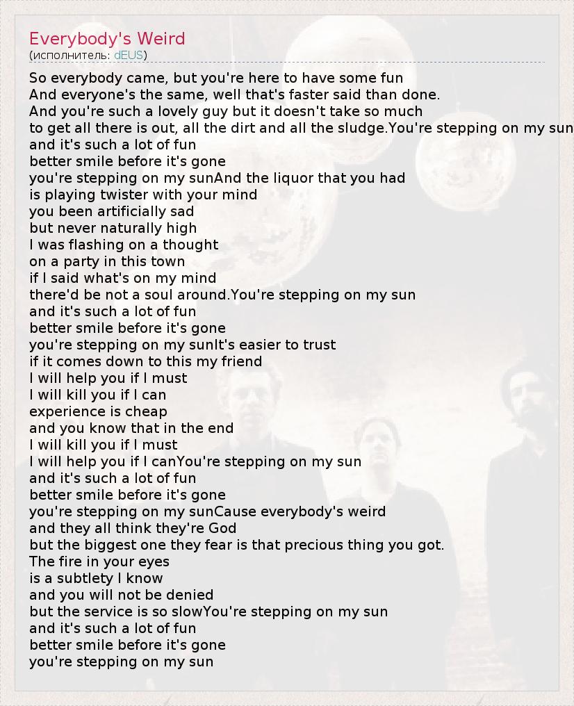 А как ты думаешь, о чем песня "Everybody's Weird" ?