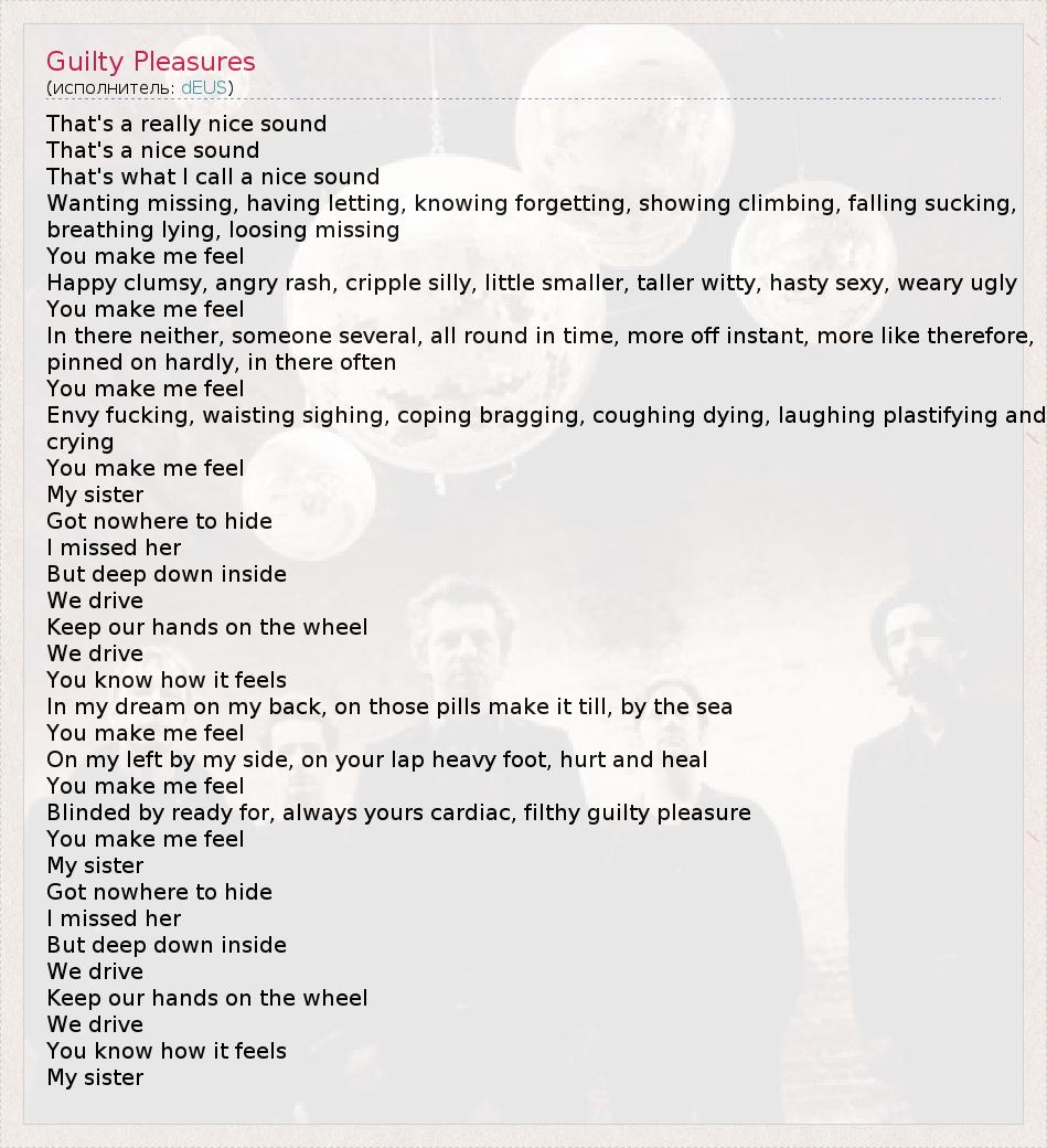 А как ты думаешь, о чем песня "Guilty Pleasures" ?