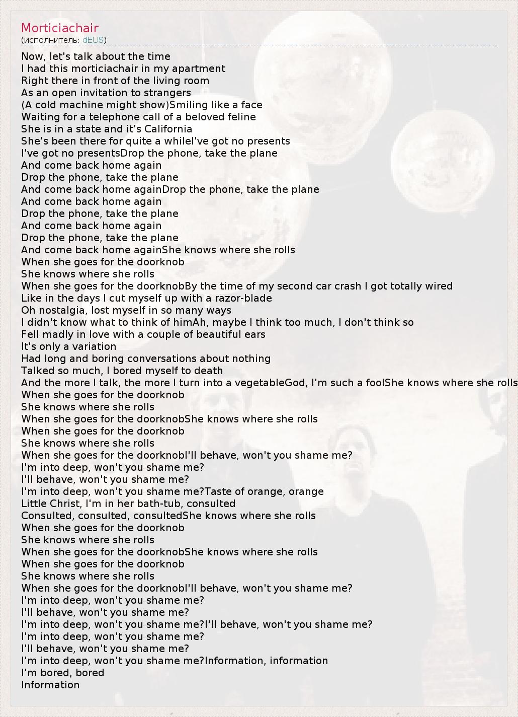 А как ты думаешь, о чем песня "Morticiachair" ?