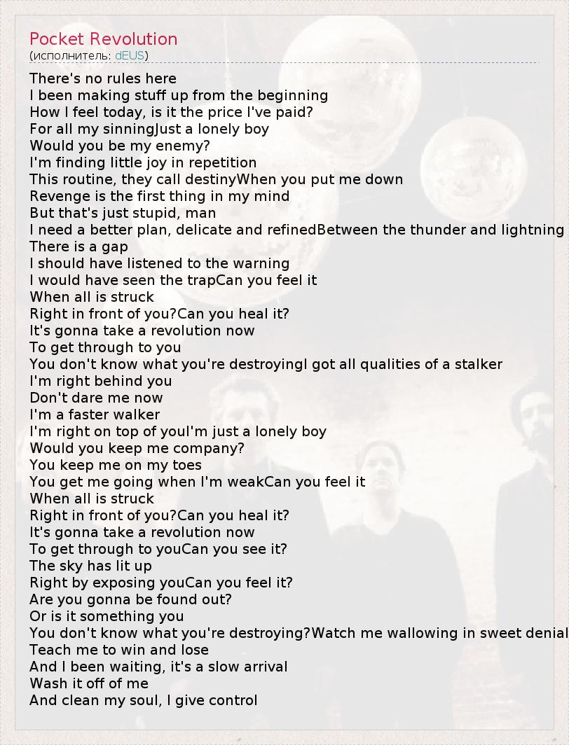 А как ты думаешь, о чем песня "Pocket Revolution" ?