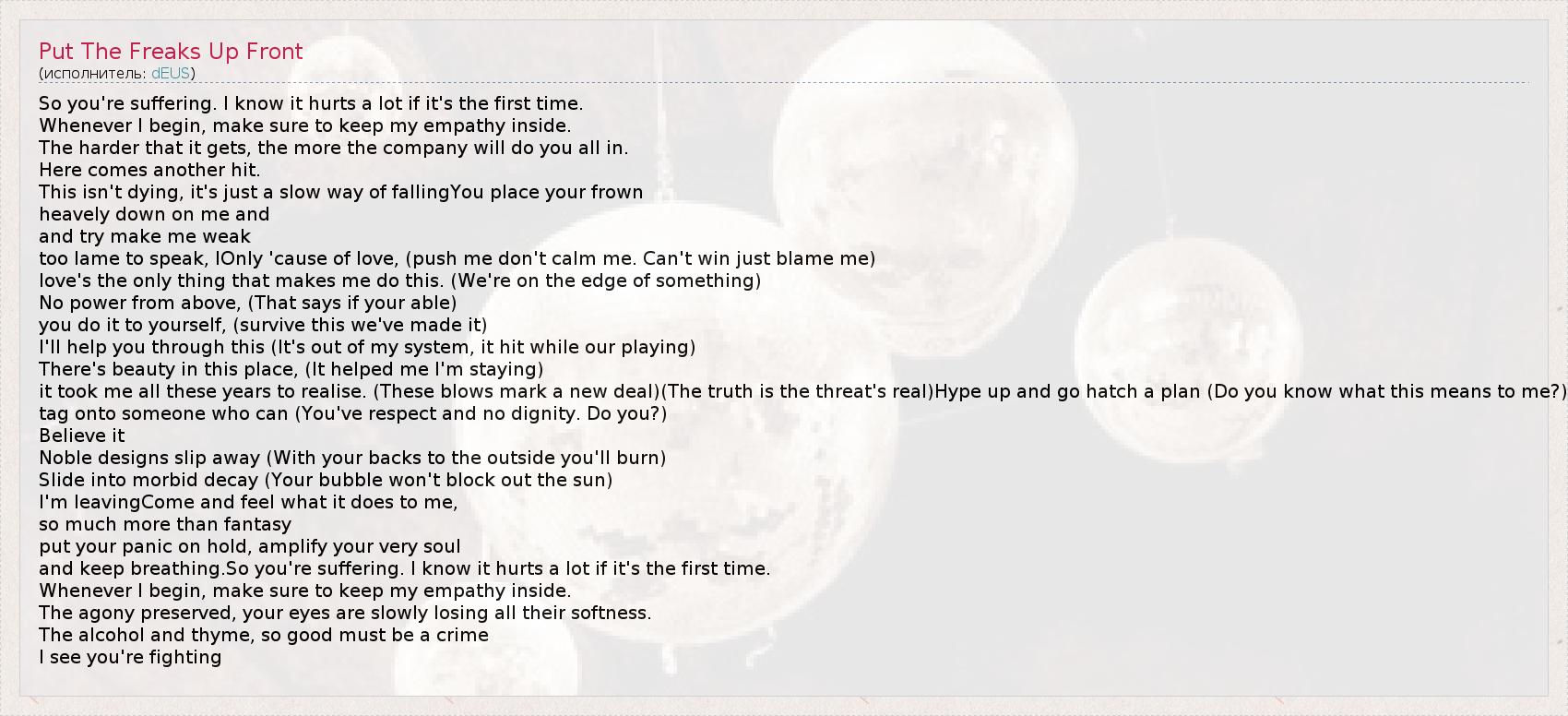 А как ты думаешь, о чем песня "Put The Freaks Up Front" ?