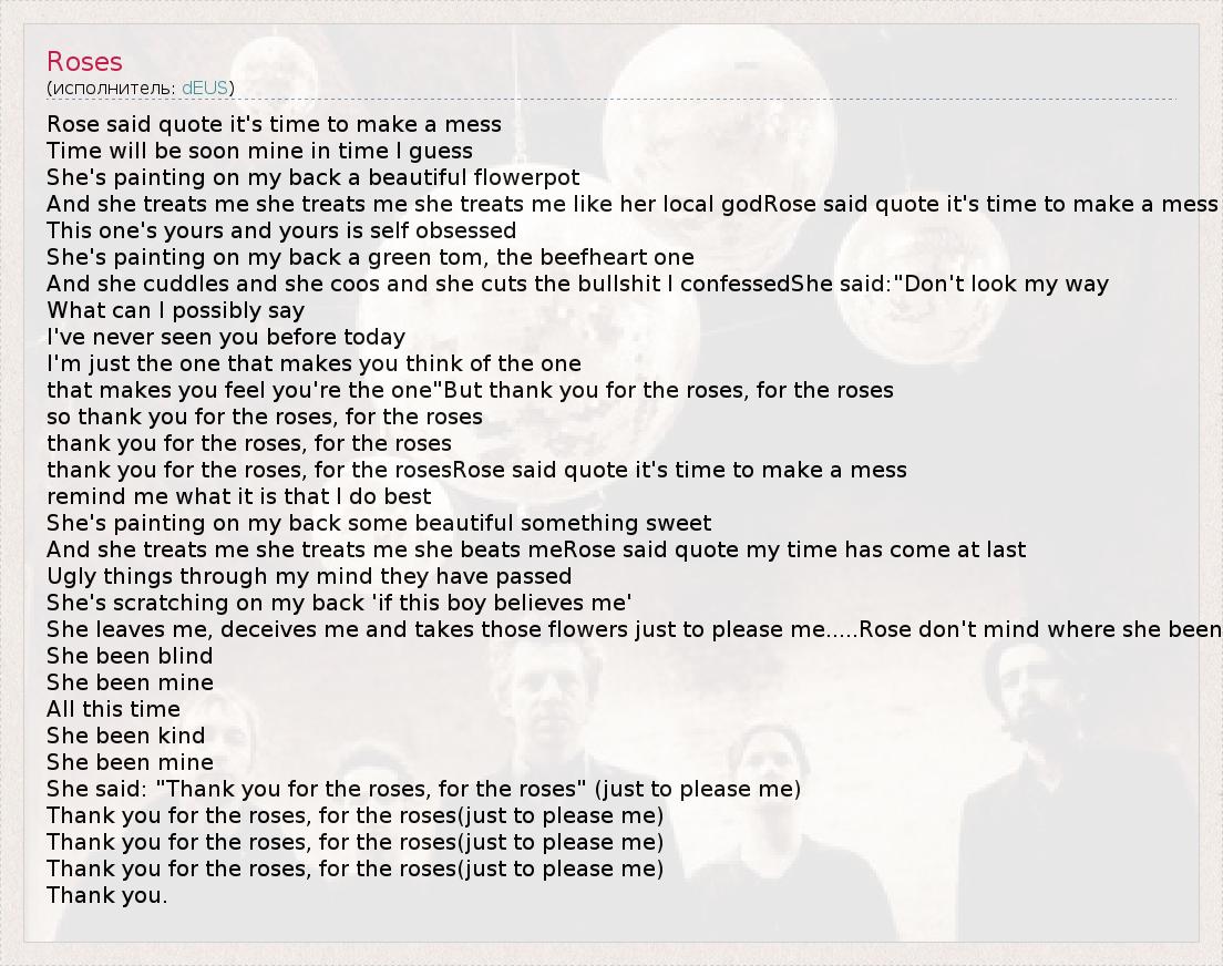She said: "Thank you for the roses, for the roses" (just to please me)