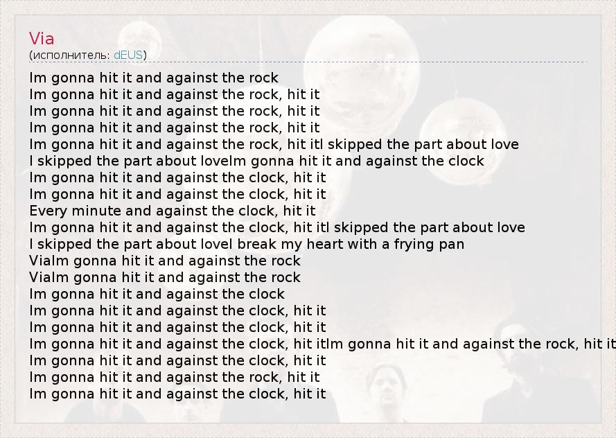 Im gonna hit it and against the rock, hit itI skipped the part about love