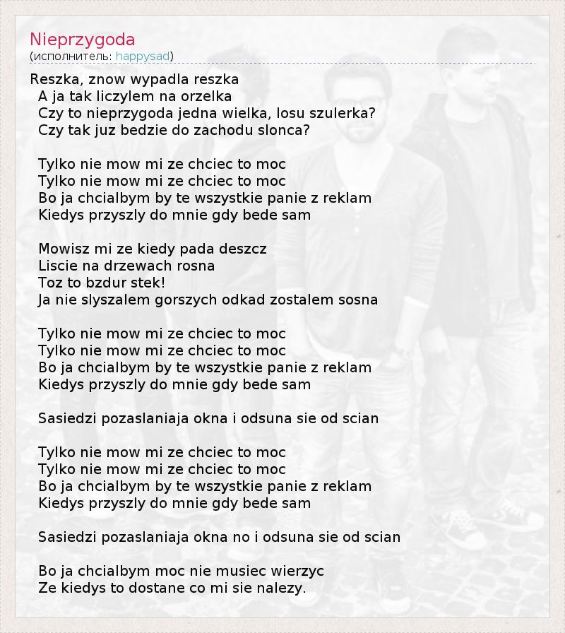 А как ты думаешь, о чем песня "Nieprzygoda" ?