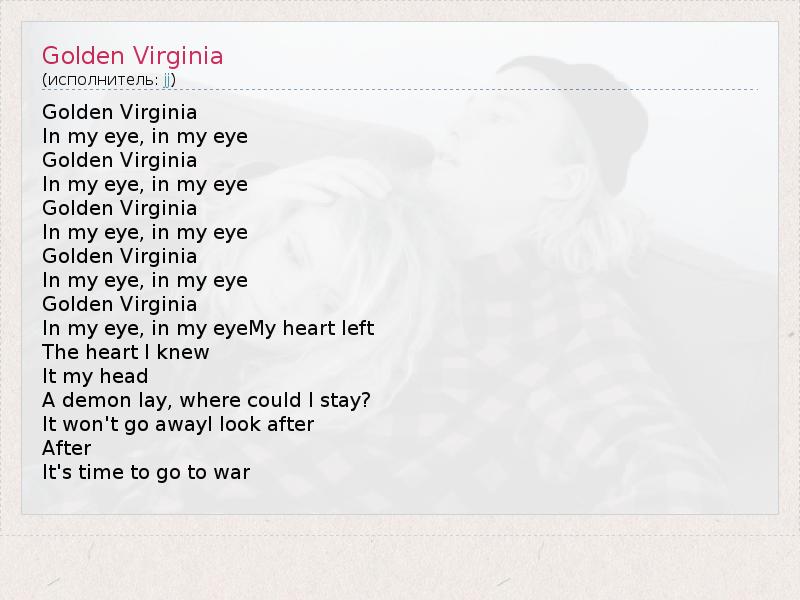 А как ты думаешь, о чем песня "Golden Virginia" ?