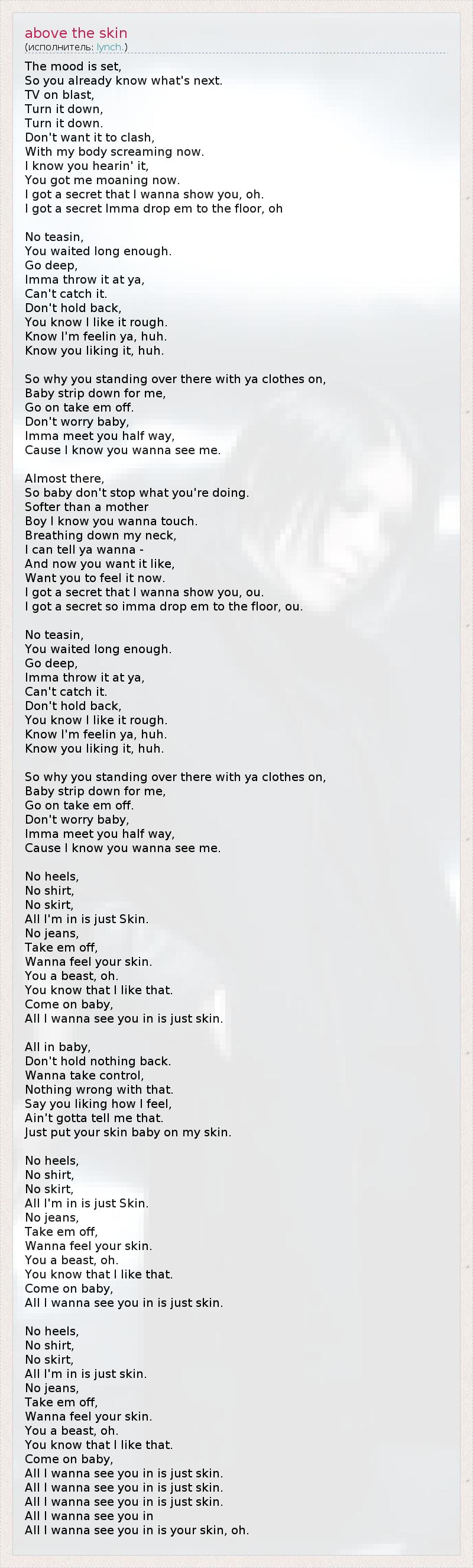 Все, что я хочу видеть, это твоя кожа.