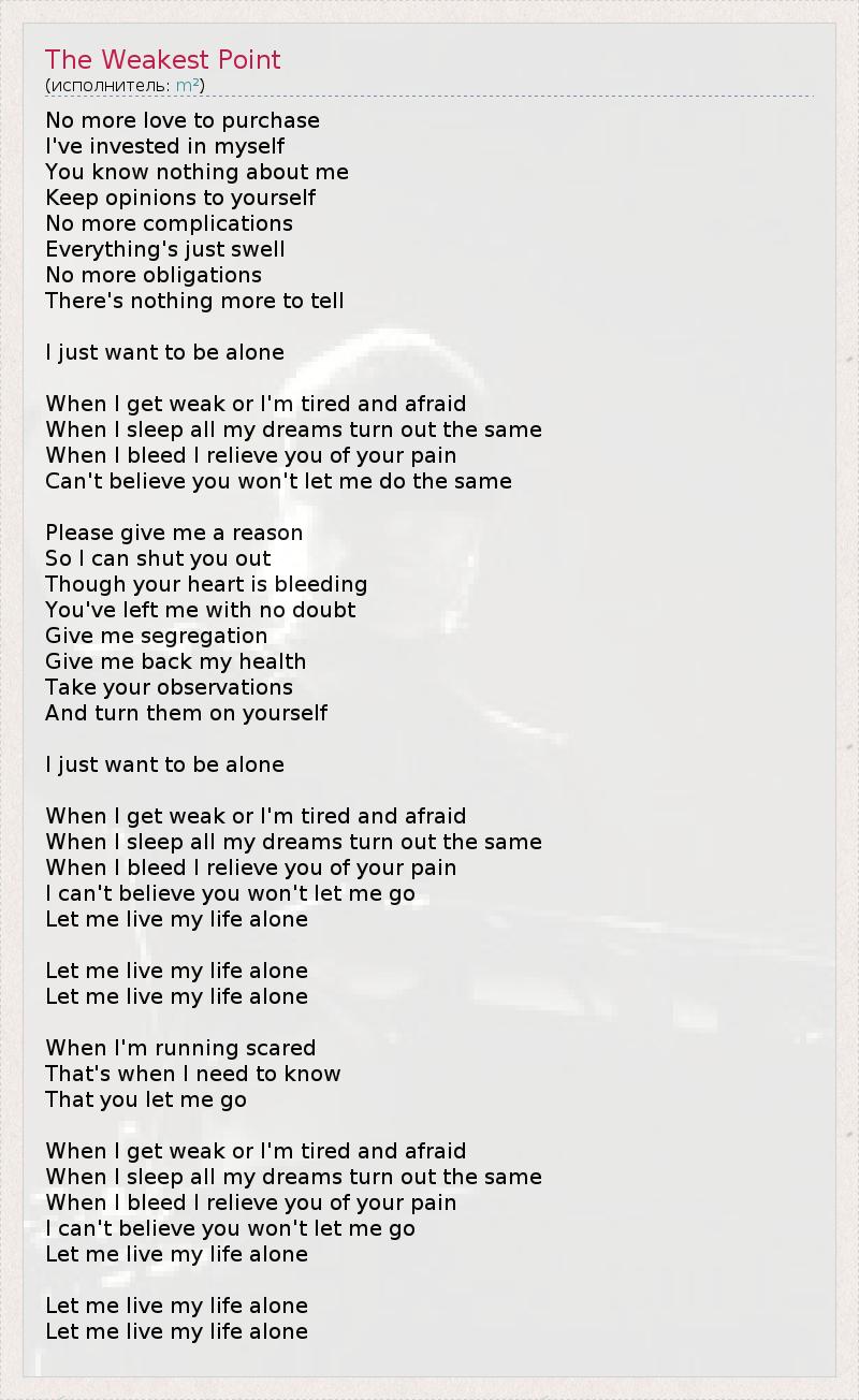 А как ты думаешь, о чем песня "The Weakest Point" ?