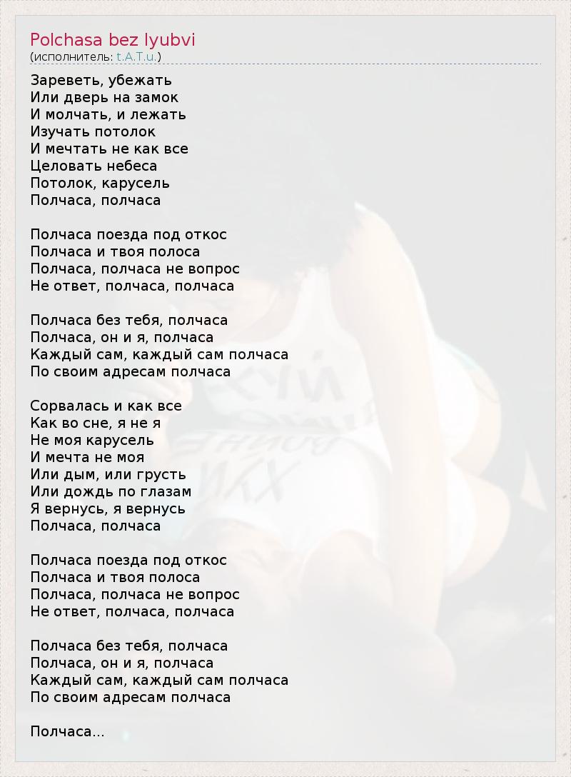 А как ты думаешь, о чем песня "Polchasa bez lyubvi" ?