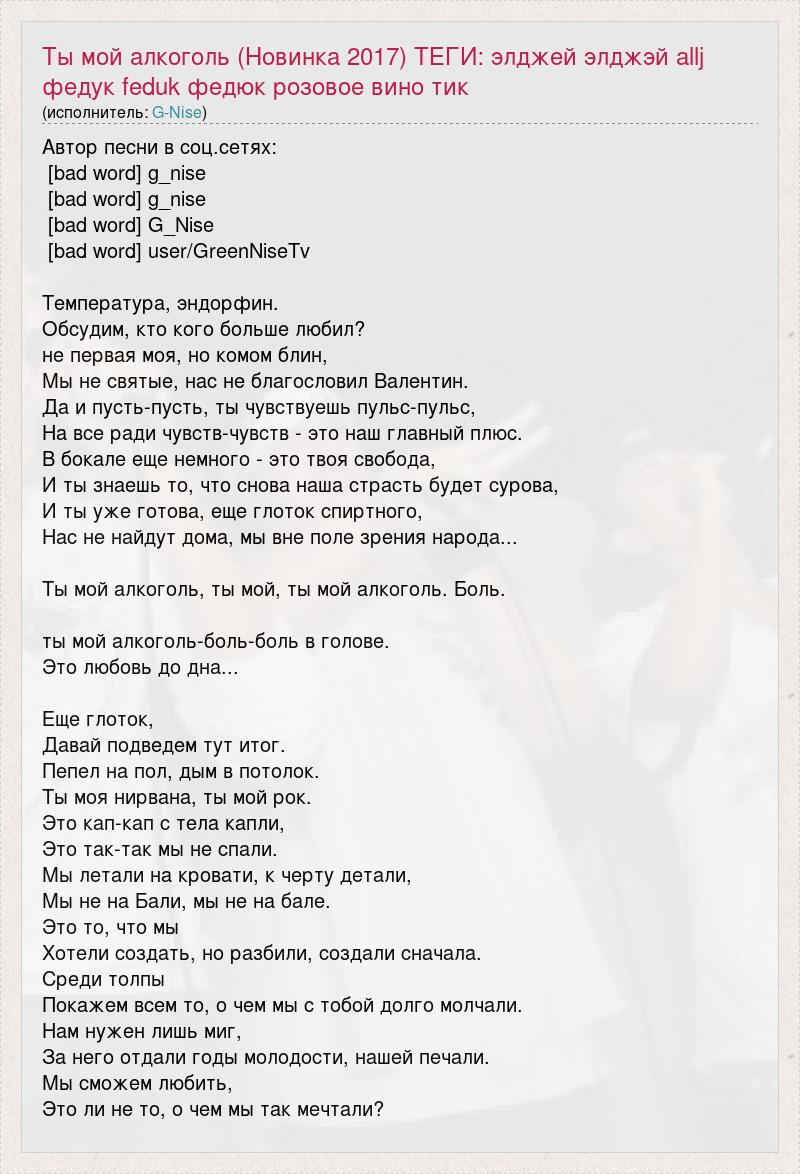 ГлавнаяИсполнителиG-NiseТы мой алкоголь (Новинка 2017) ТЕГИ: элджей элджэй allj федук feduk федюк