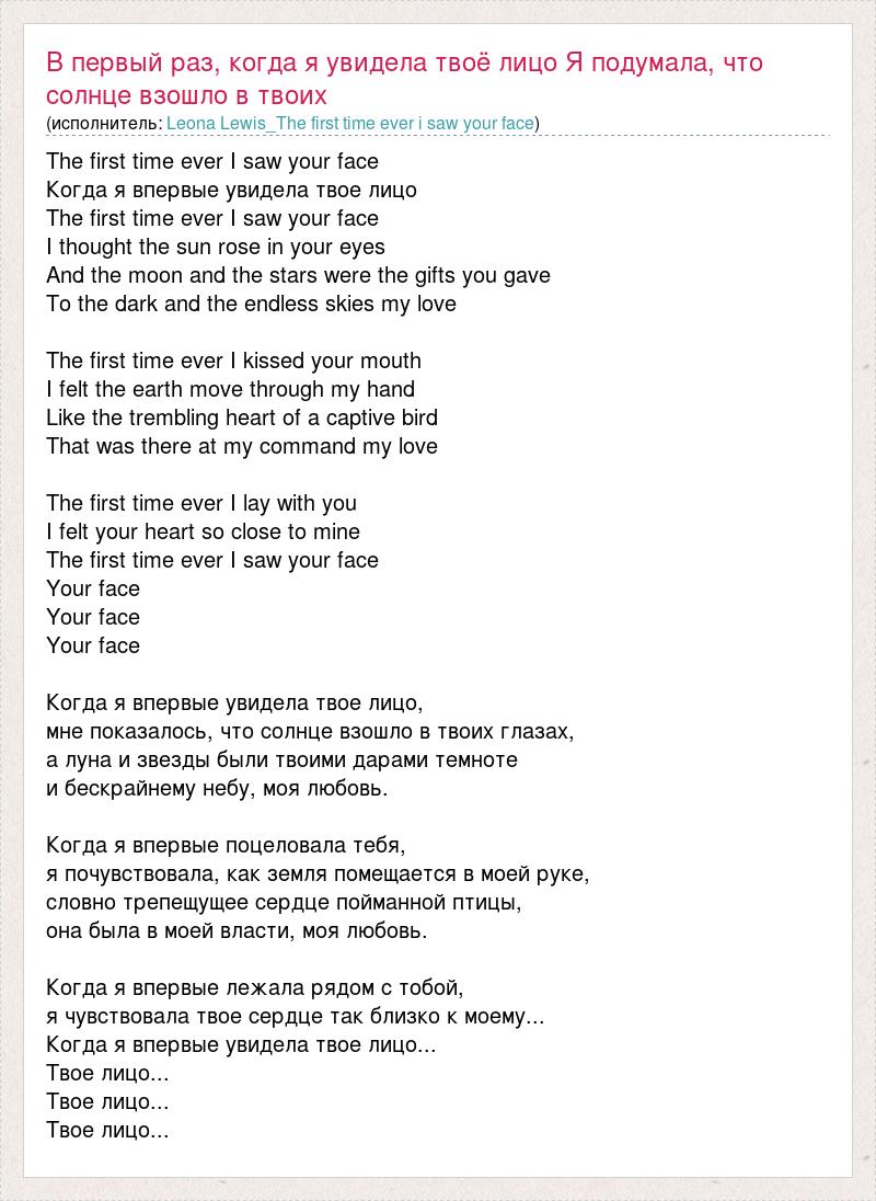 Когда я впервые увидела твое лицо...
