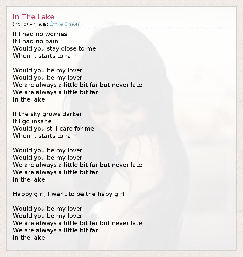 А как ты думаешь, о чем песня "In The Lake" ?