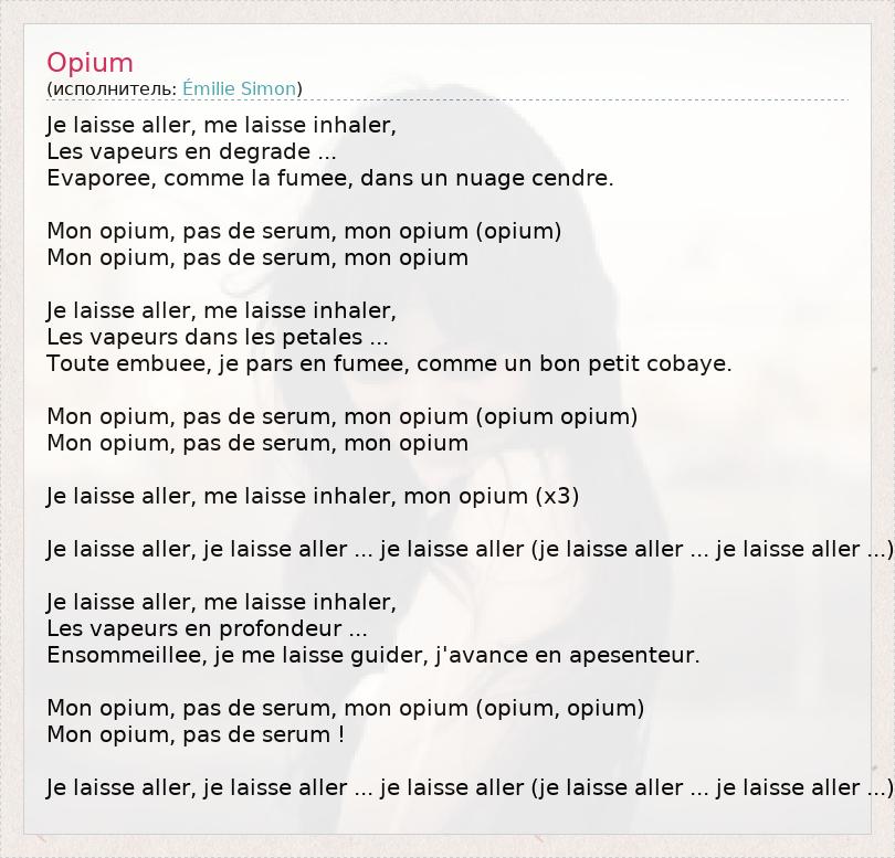 Mon opium, pas de serum, mon opium (opium, opium)