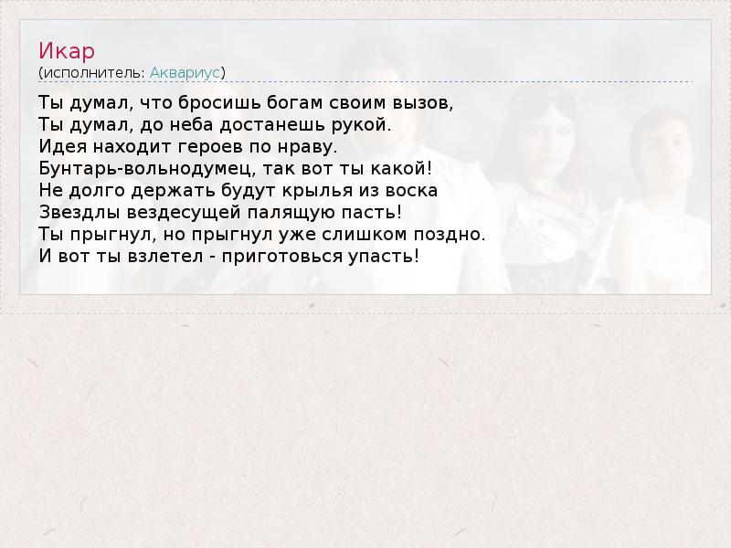 А как ты думаешь, о чем песня "Икар" ?
