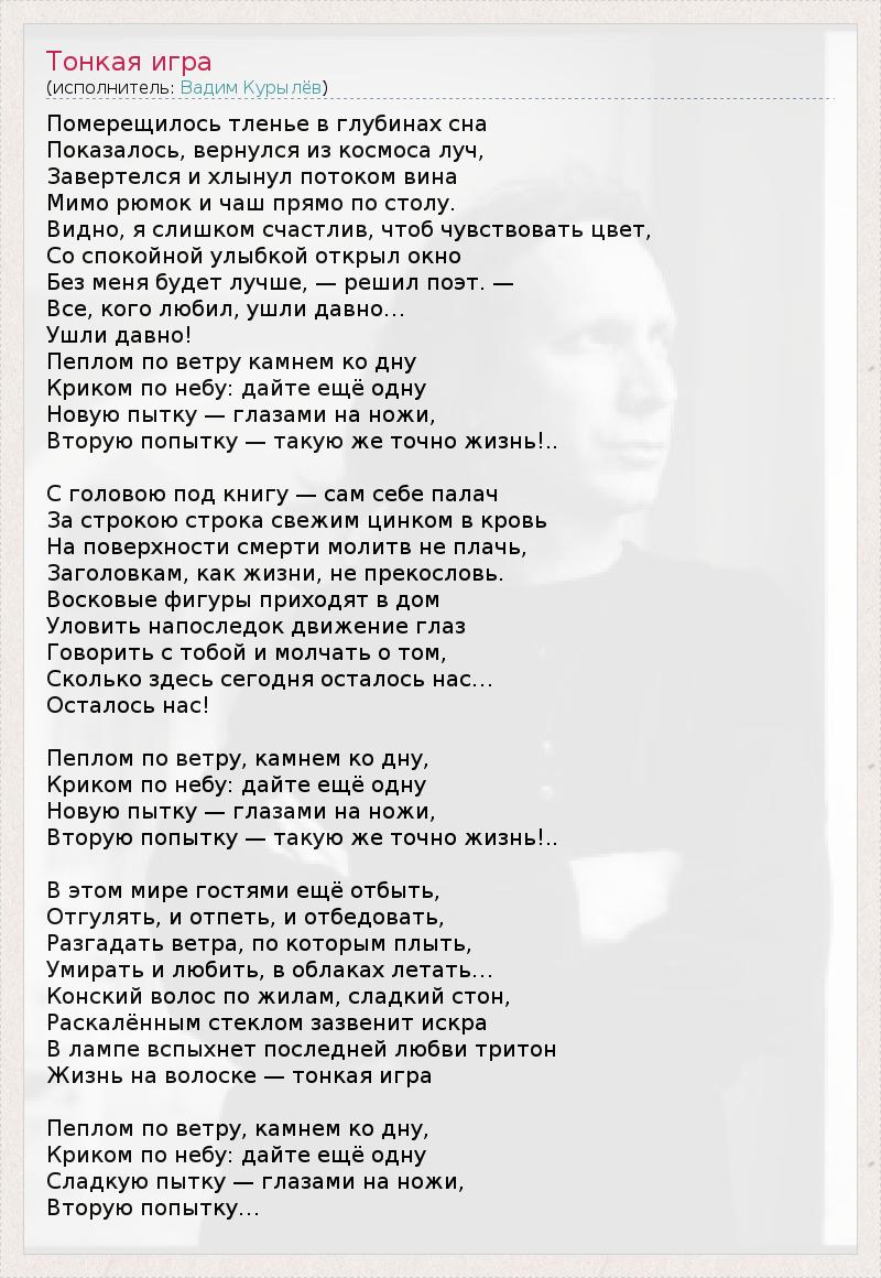 А как ты думаешь, о чем песня "Тонкая игра" ?