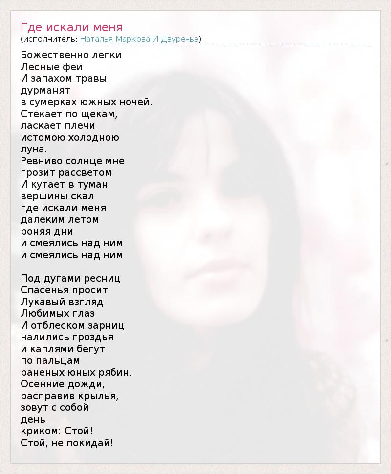 А как ты думаешь, о чем песня "Где искали меня" ?