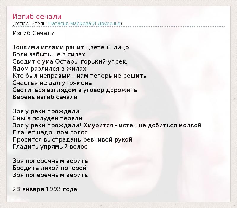 А как ты думаешь, о чем песня "Изгиб сечали" ?