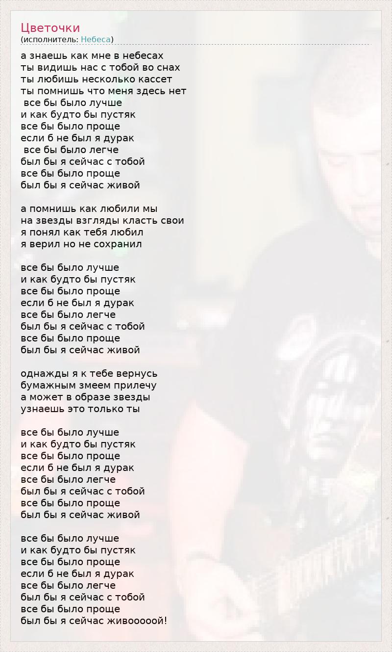 Это интересно:Группа Небеса была создана в 1999 г. В 2000 г. был записан единственный на сегодняшний день альбом -"Синие Киты" на студии Green Fox в Зеленограде. УчастникиАндрей Таранов - вокал, гитара, тексты, музыкаАндрей Червяков - вокал, гитары, музыка, аранжировкиАлексей Агапов - текст, музыка