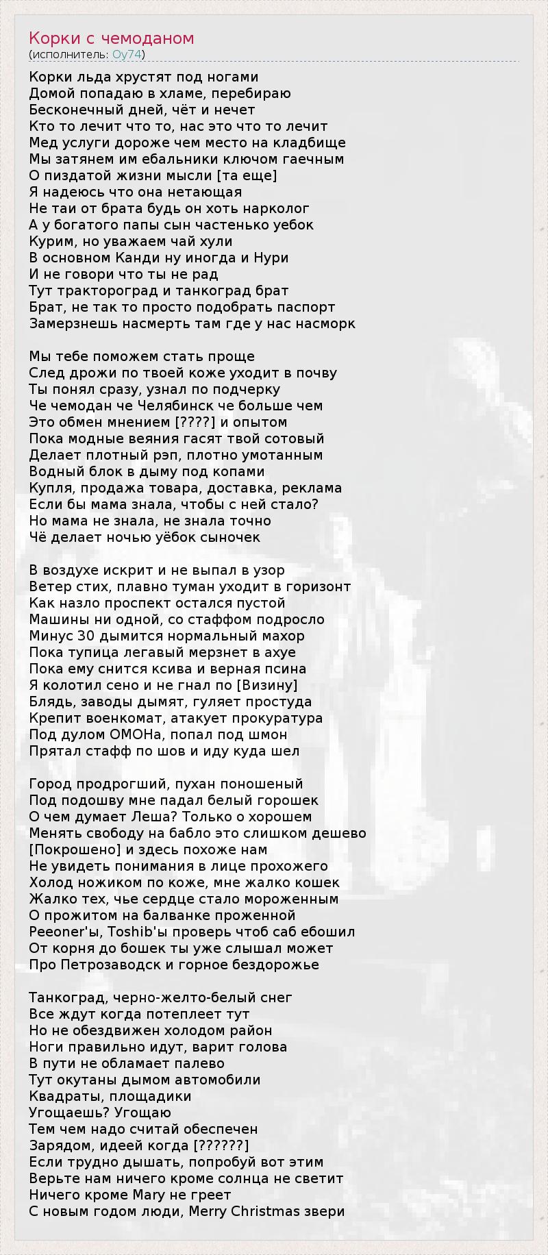 ГлавнаяИсполнителиОу74Корки с чемоданом