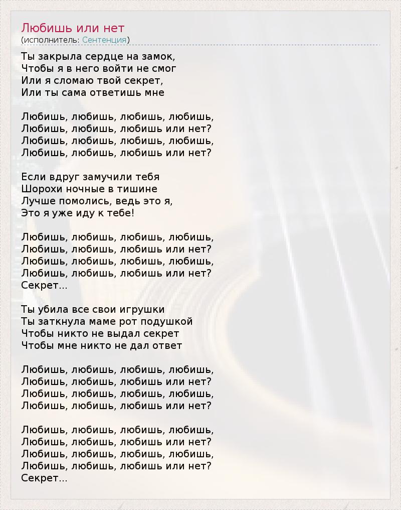 А как ты думаешь, о чем песня "Любишь или нет" ?