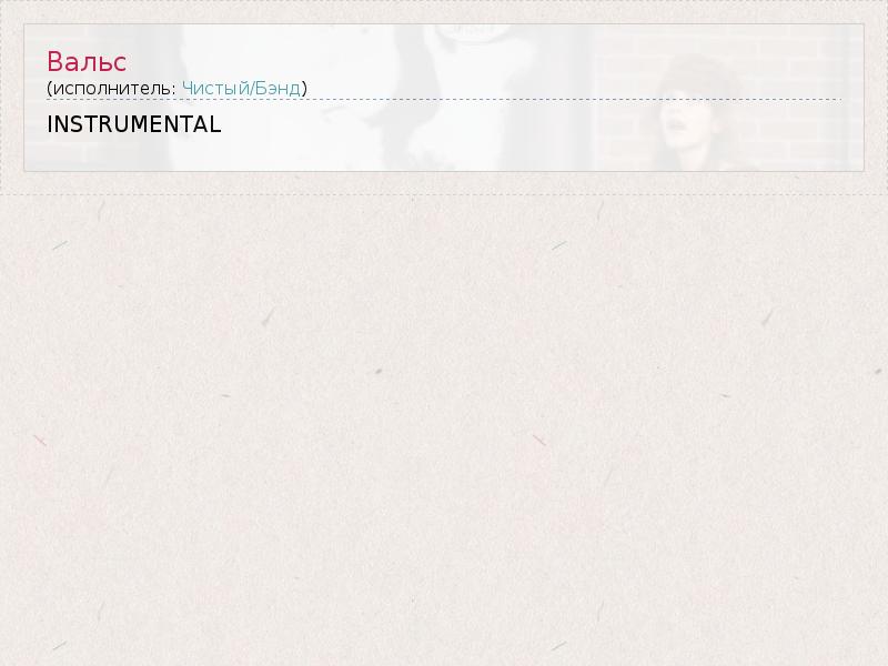 Это интересно:Борис ЧистыйНАБЕРЕЖНАЯ ЛИМПОПО (1988-1990г)Чистый & Шенкер (1998-1999 гг)Чистый & Бурьянов (2004-2006 гг)Черно-Белое Радио (2006-2008 гг)Борис Чистый & Анастасия ГутЧистый / Бэнд Коллектив «Чистый/Бэнд» был образован в 2009 году в «знойном» городе Санкт-Петербурге. «Такой очень питерский, смачно сыгранный акустический рок. Гитара, контрабас, перкуссия, гармошка, голос, женский... продолжение