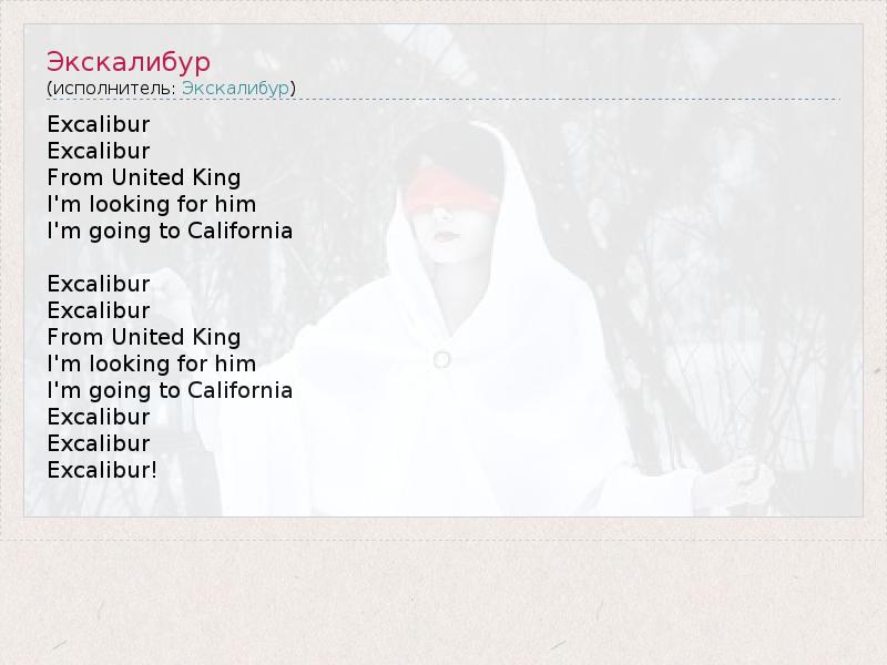 А как ты думаешь, о чем песня "Экскалибур" ?