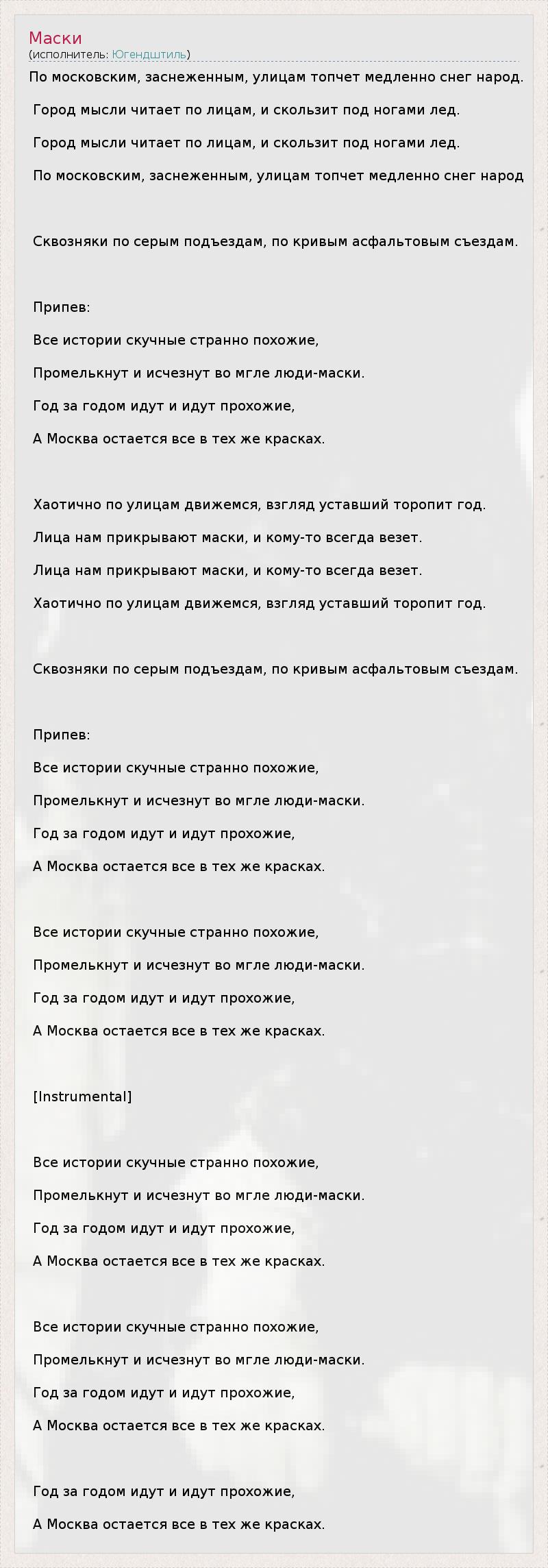 А как ты думаешь, о чем песня "Маски" ?