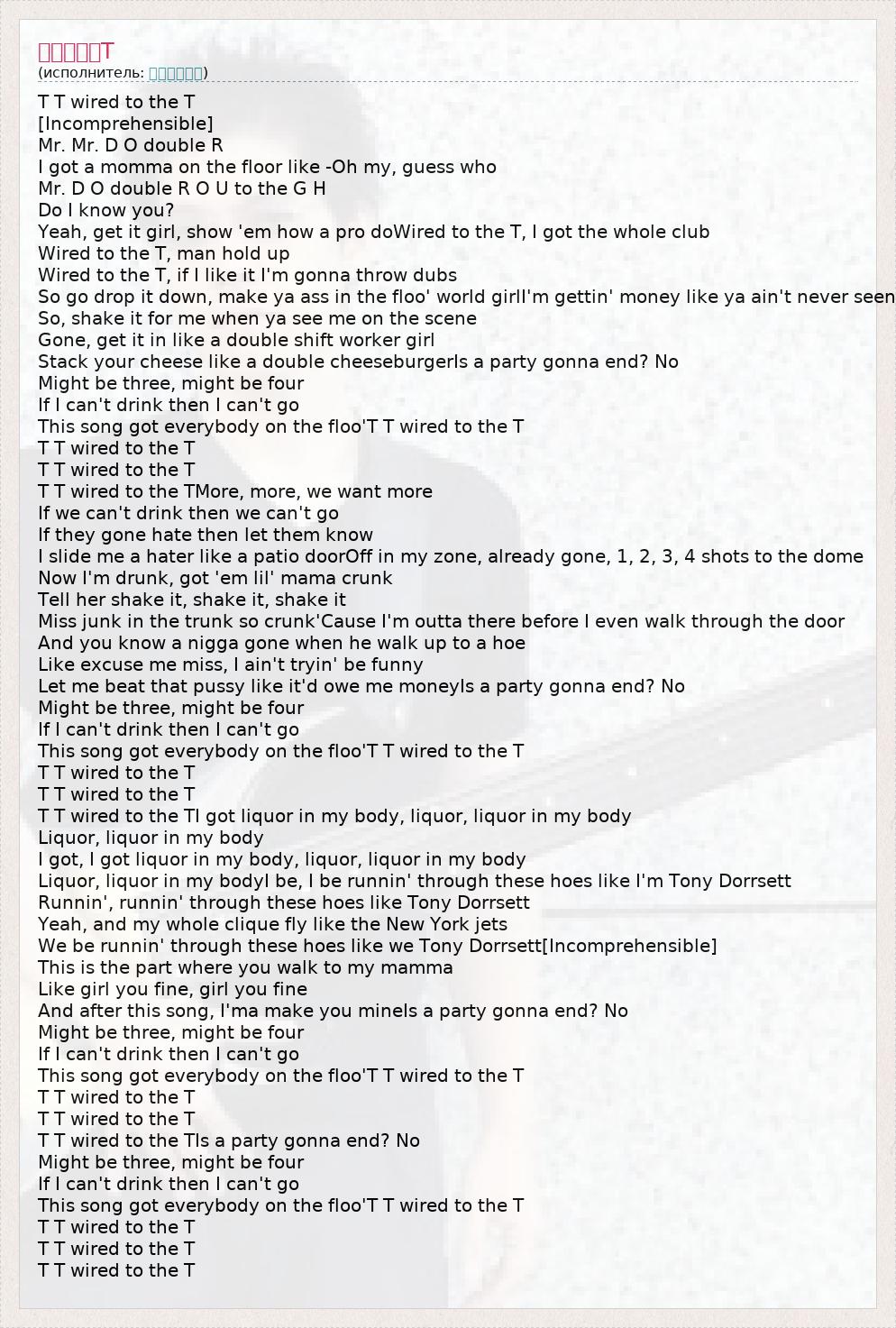 T T wired to the TI got liquor in my body, liquor, liquor in my body